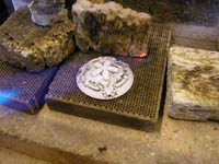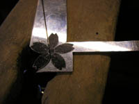 そしてコンチョですので裏側にネジのメス側をロウ付けです. アメリカのコインコンチョが有名で革細工師は皆ソレを使っていますが、ロウ付けがあまい物が多く外れてしまうのが多いんです. もちろん当店のは外れるなんて絶対ありません