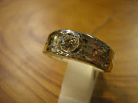ダイヤのカットに合わせて少しづつRINGを彫っていきます。そして肝心のダイヤが落ちない様に覆輪を(石を留める物)作りRINGにロウ付けし